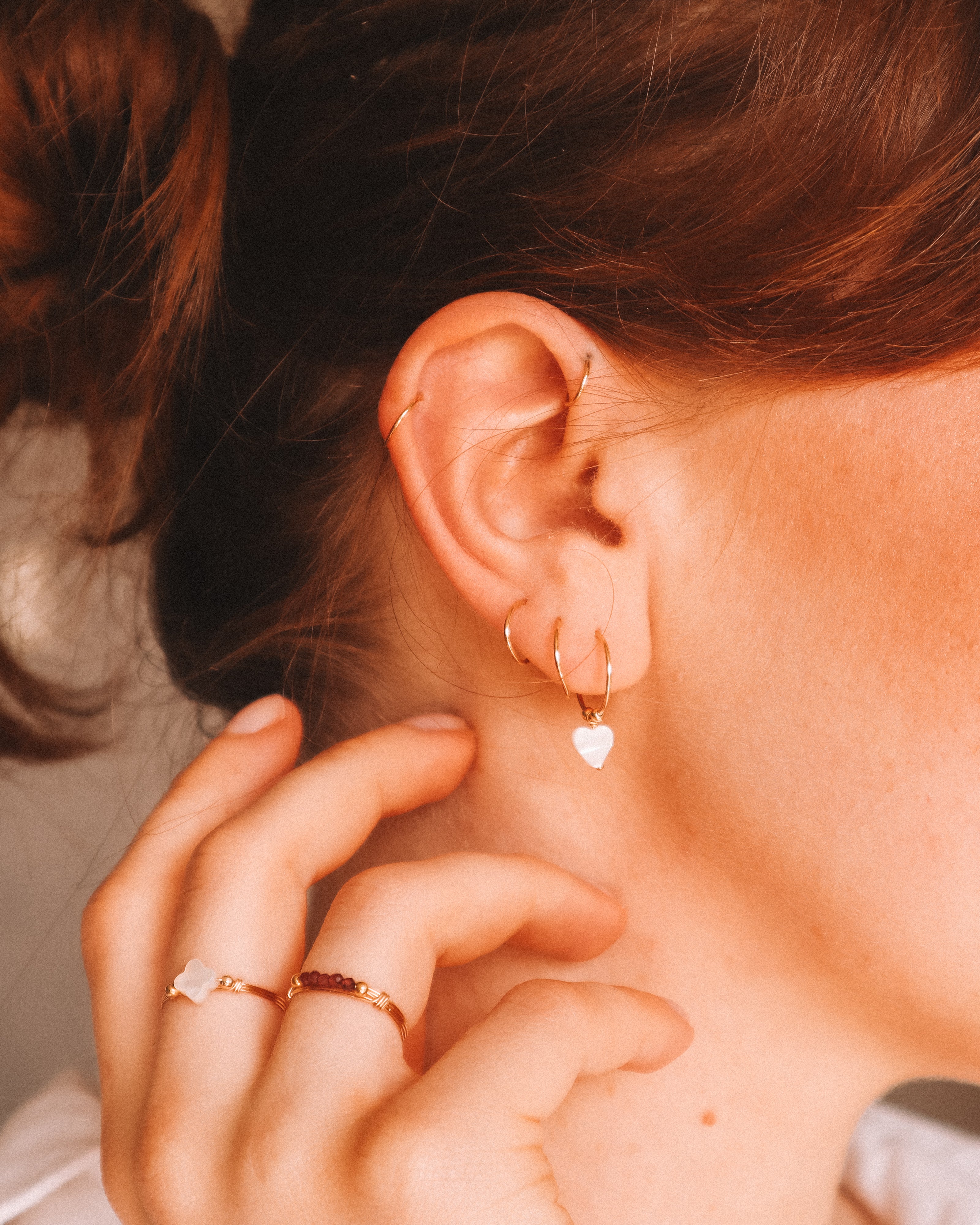 Les boucles d'oreilles créoles Anémone sont un choix élégant pour ajouter une touche de douceur à votre tenue.