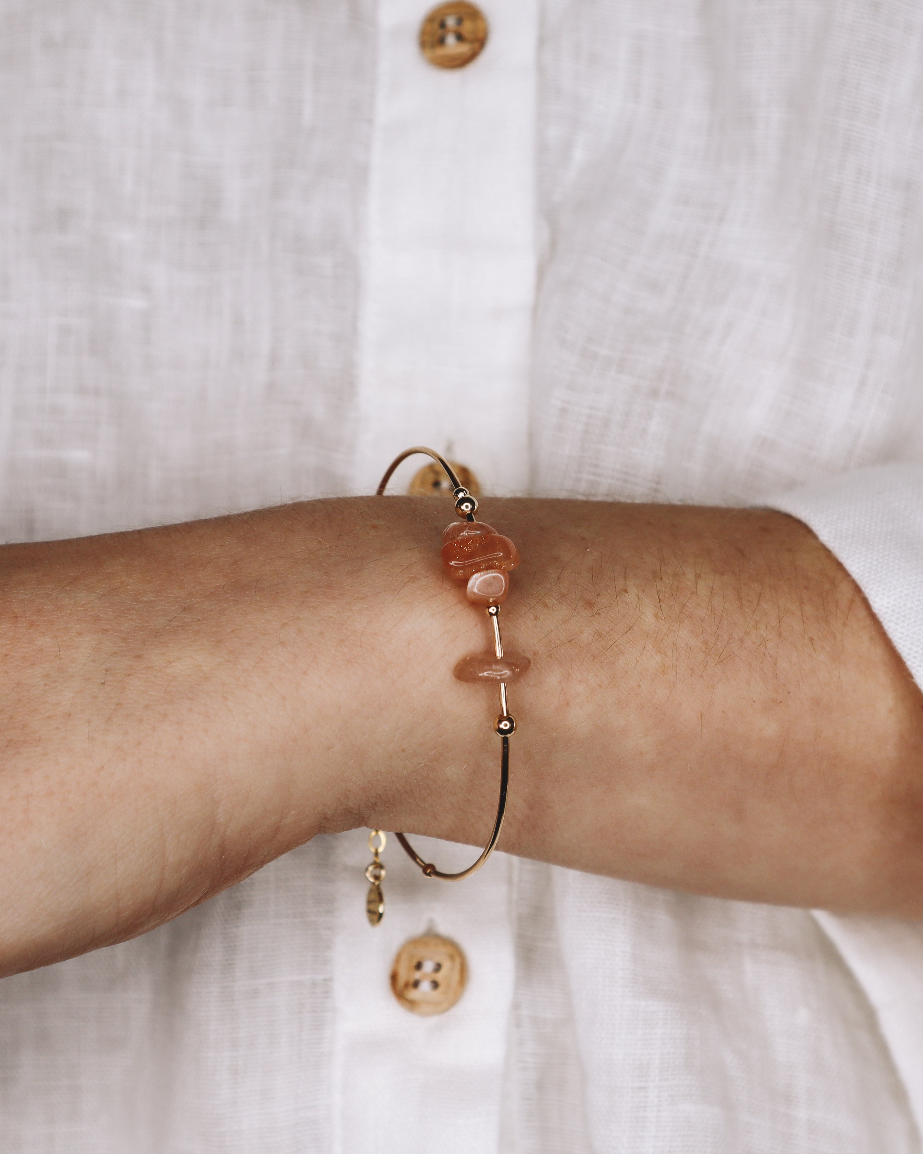 Orné de pierres naturelles du soleil. Rose/orangée, c'est une pierre qui pétille !