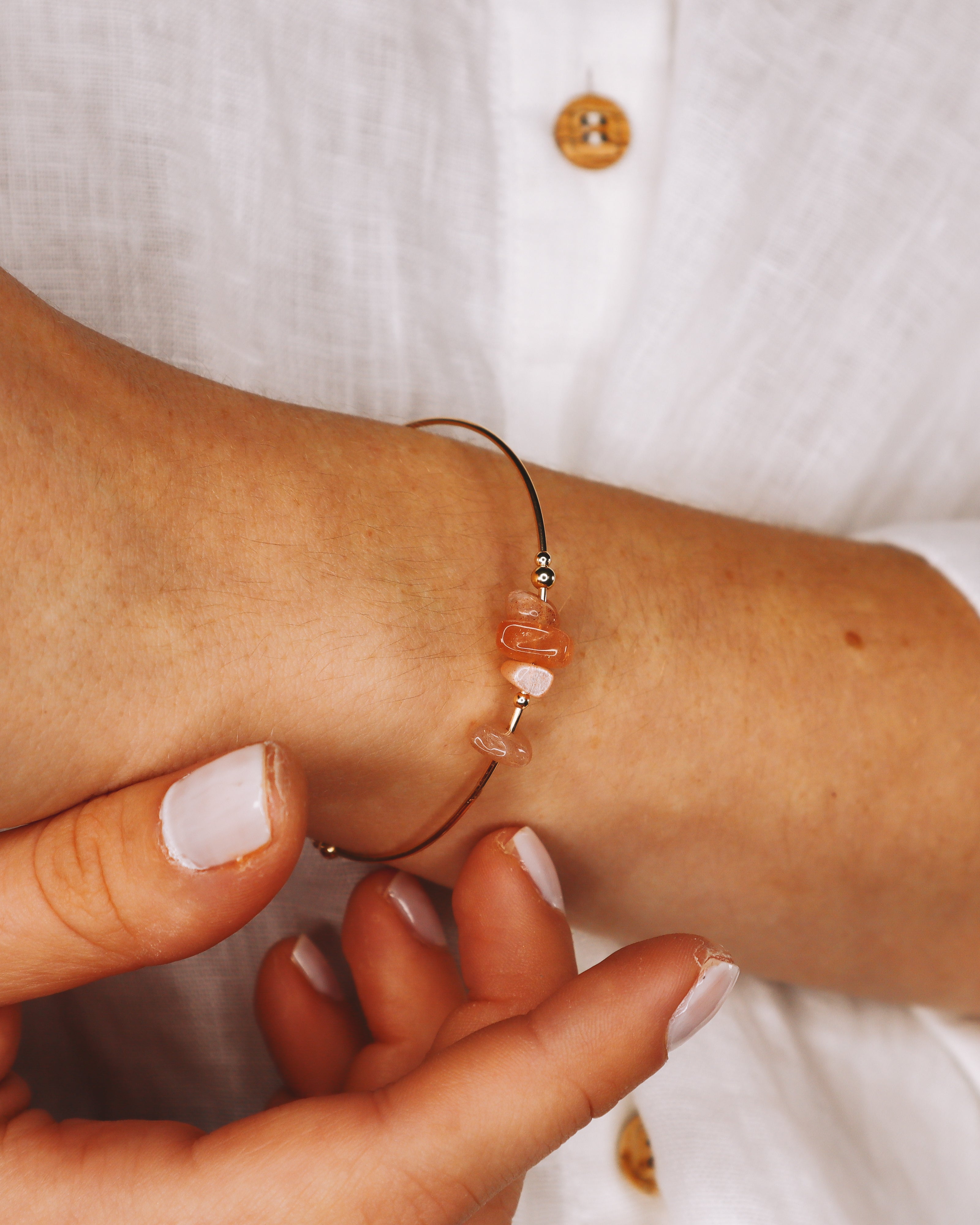 Les pierres étant naturelles et les bijoux étant fabriqués à la main, les couleurs et les formes peuvent varier légèrement par rapport à la photographie.