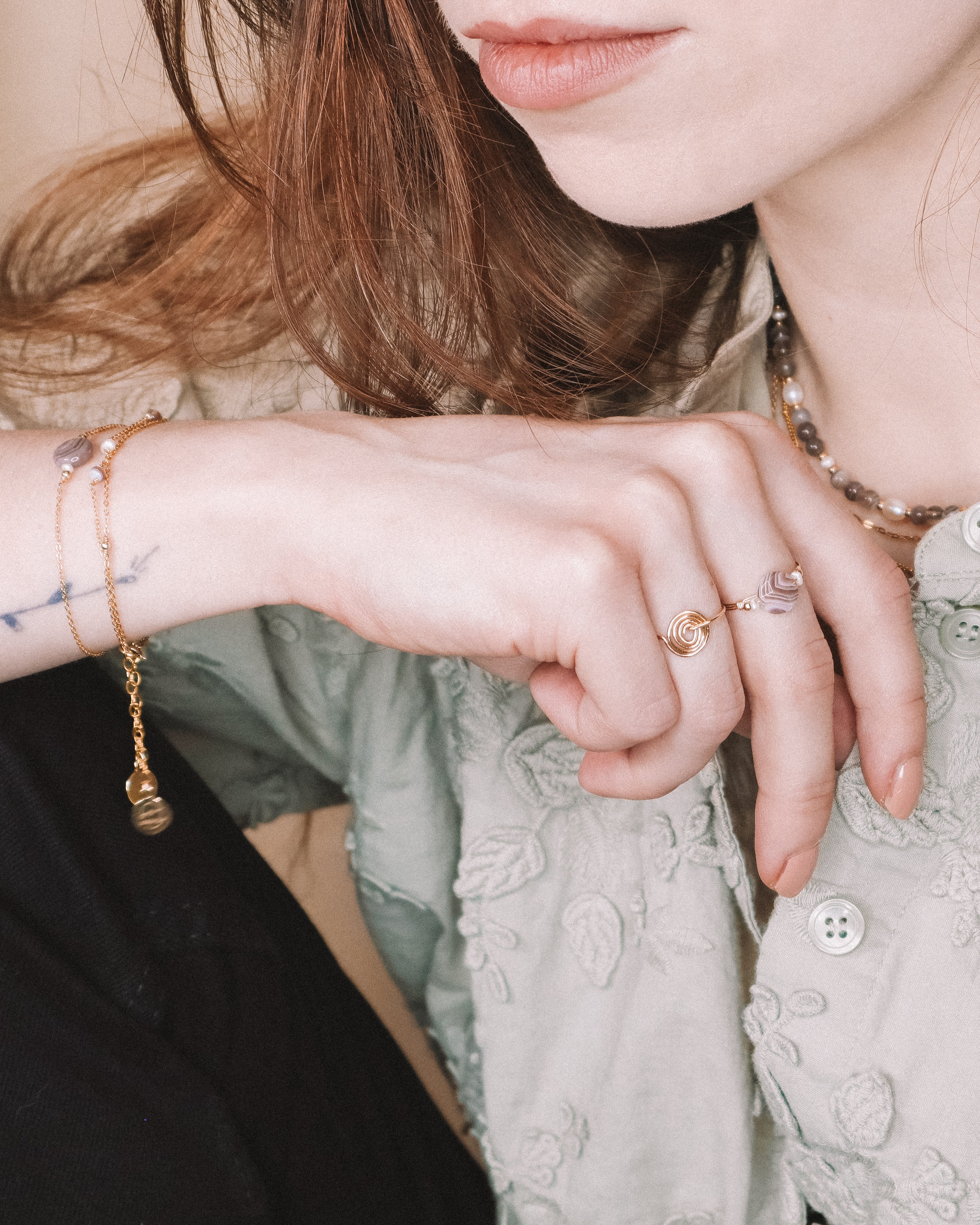 Les pierres étant naturelles et les bijoux étant fabriqués à la main, les couleurs et les formes peuvent varier légèrement par rapport à la photographie.