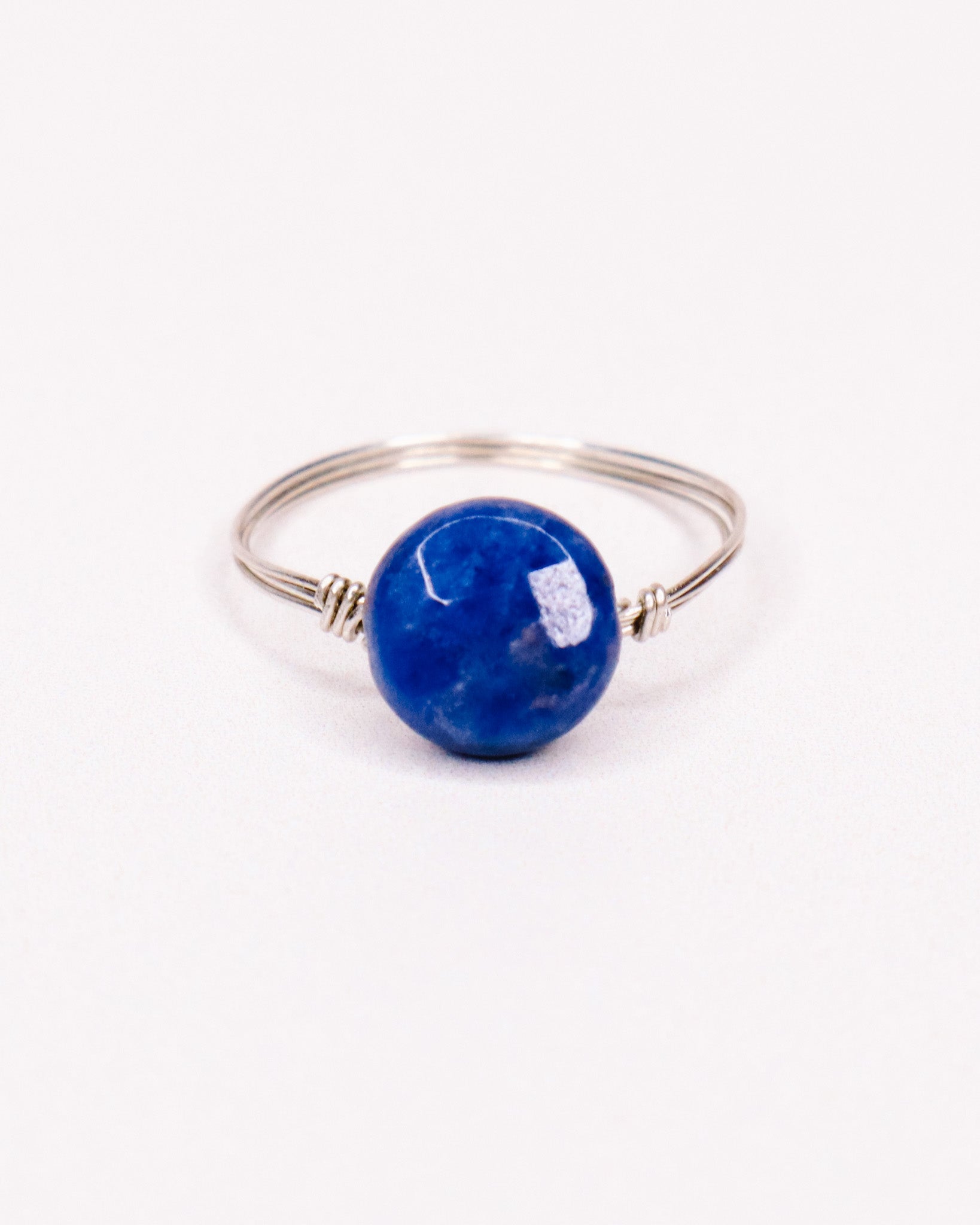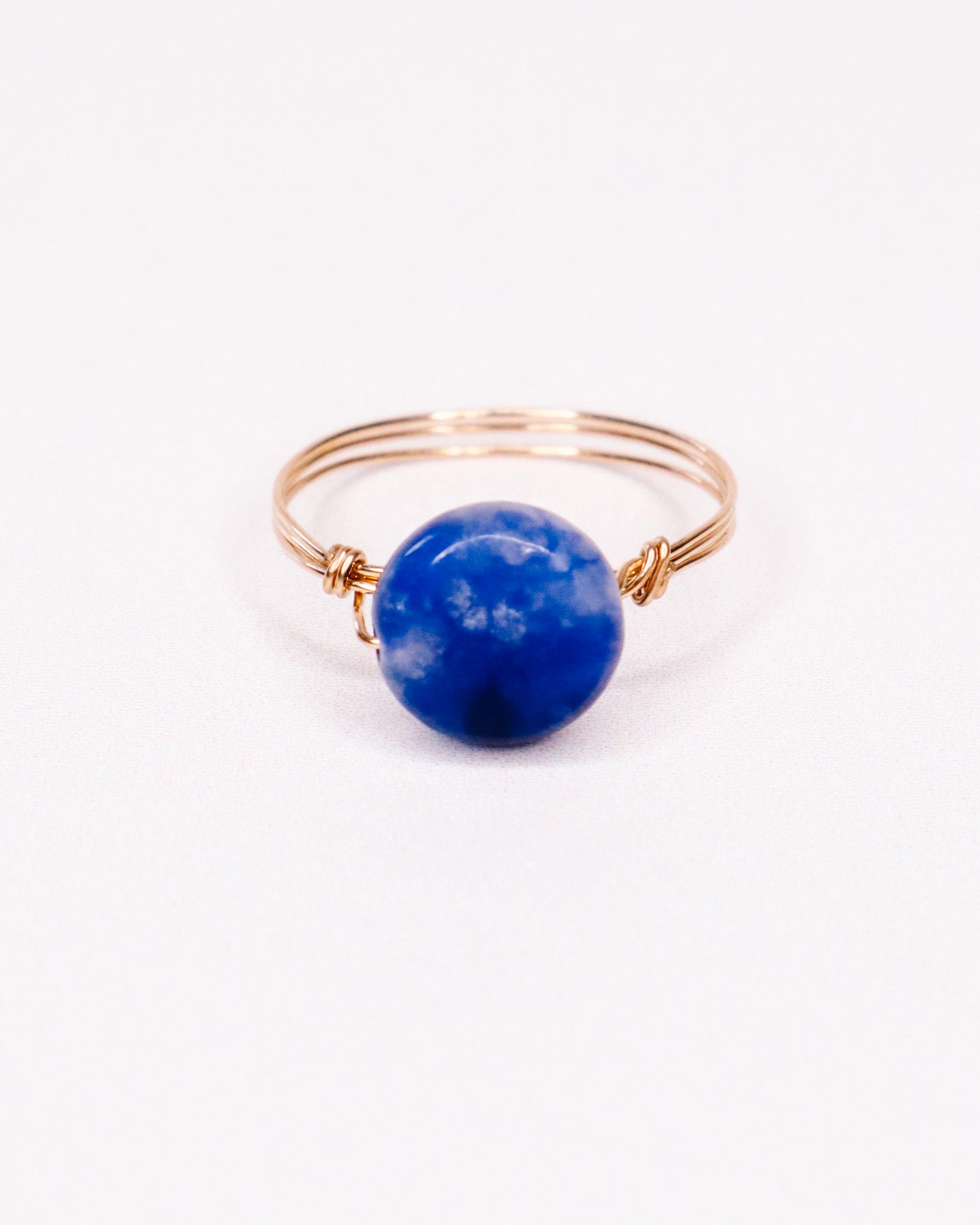 Bague multirangs en goldfilled (alliage de laiton et d'or 14ct) ou en argent 925, ornée d'une jolie pierre de sodalite bleu.