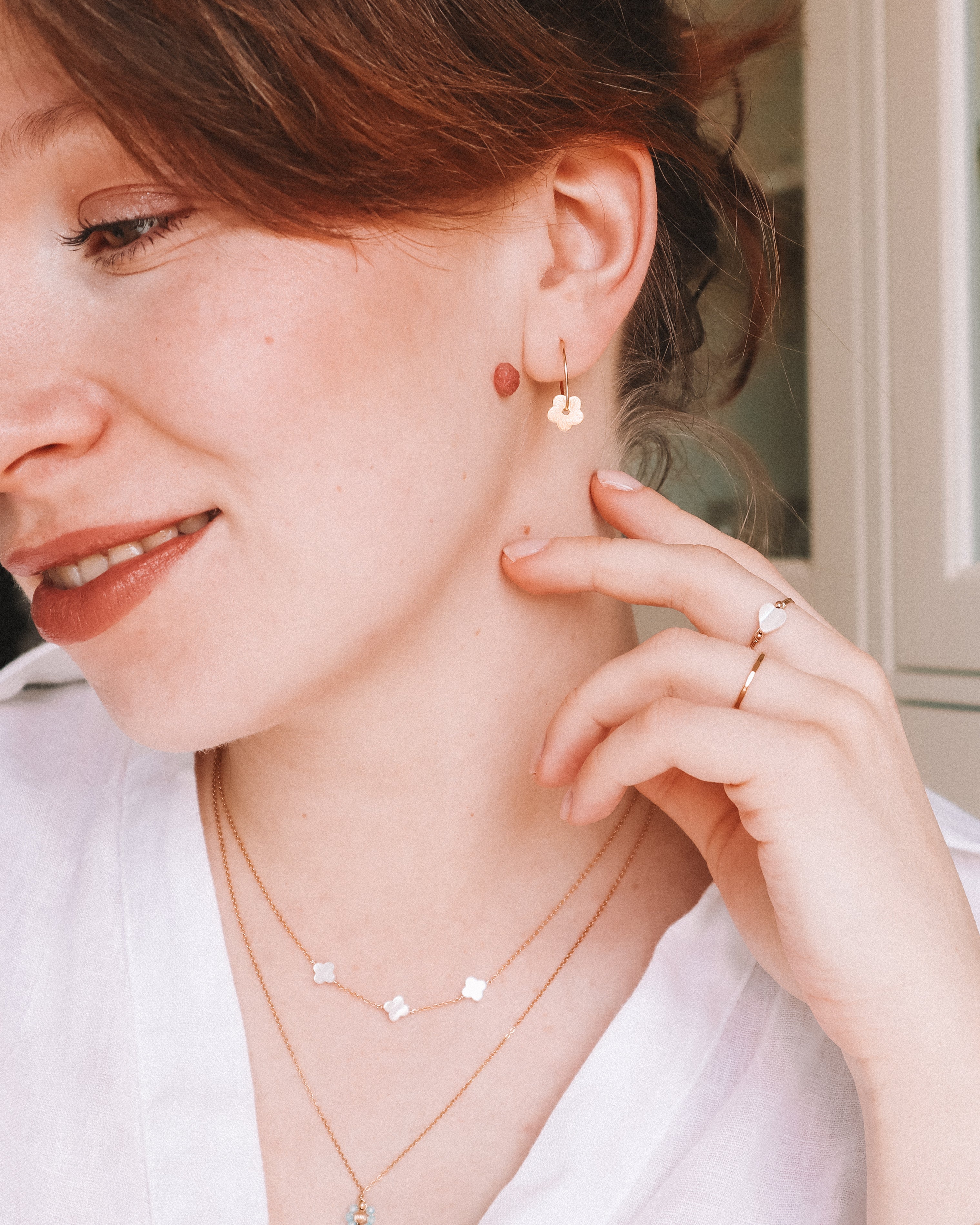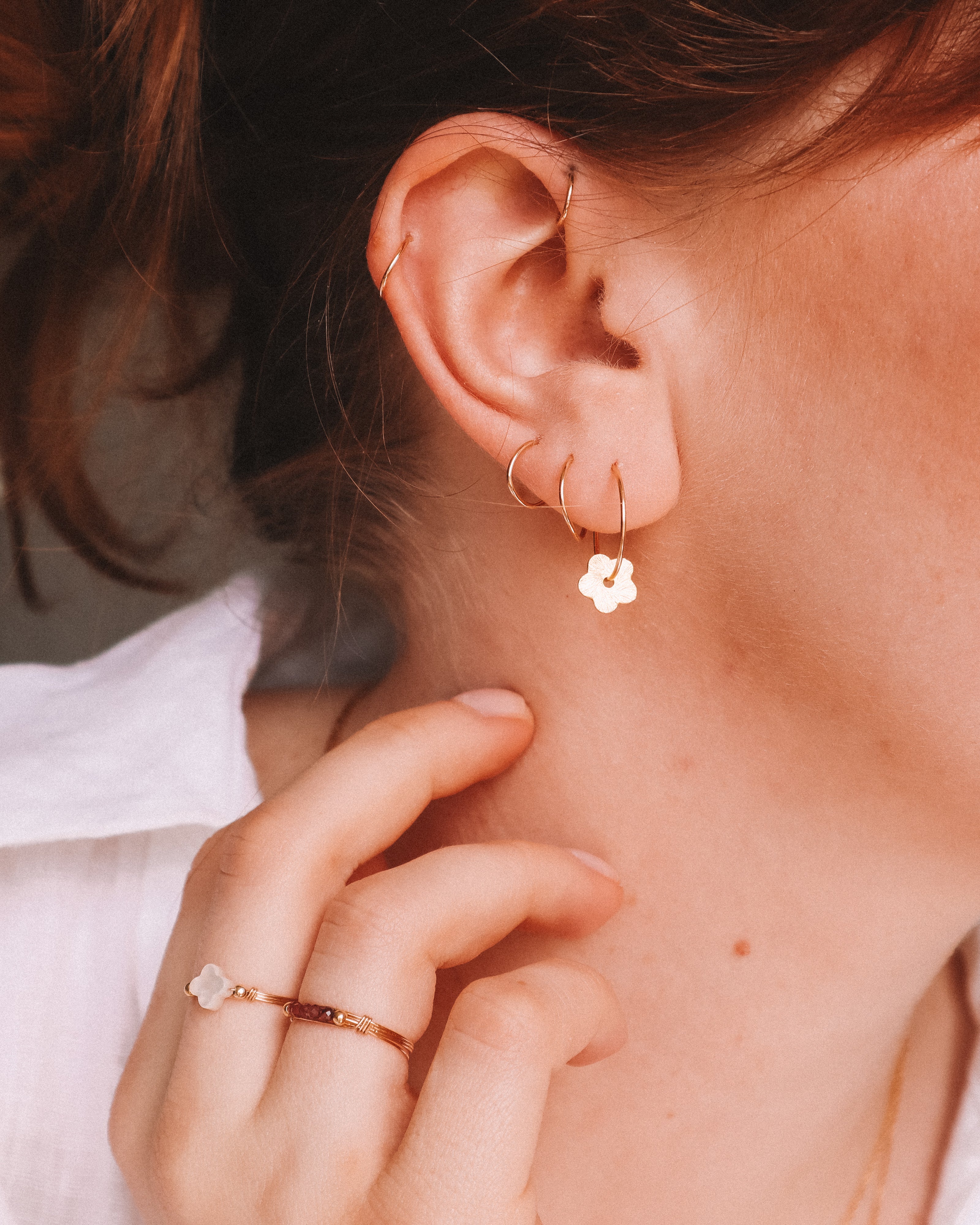 Les boucles d'oreilles créoles Caltha sont un choix élégant pour ajouter une touche de douceur et de printemps à votre tenue.