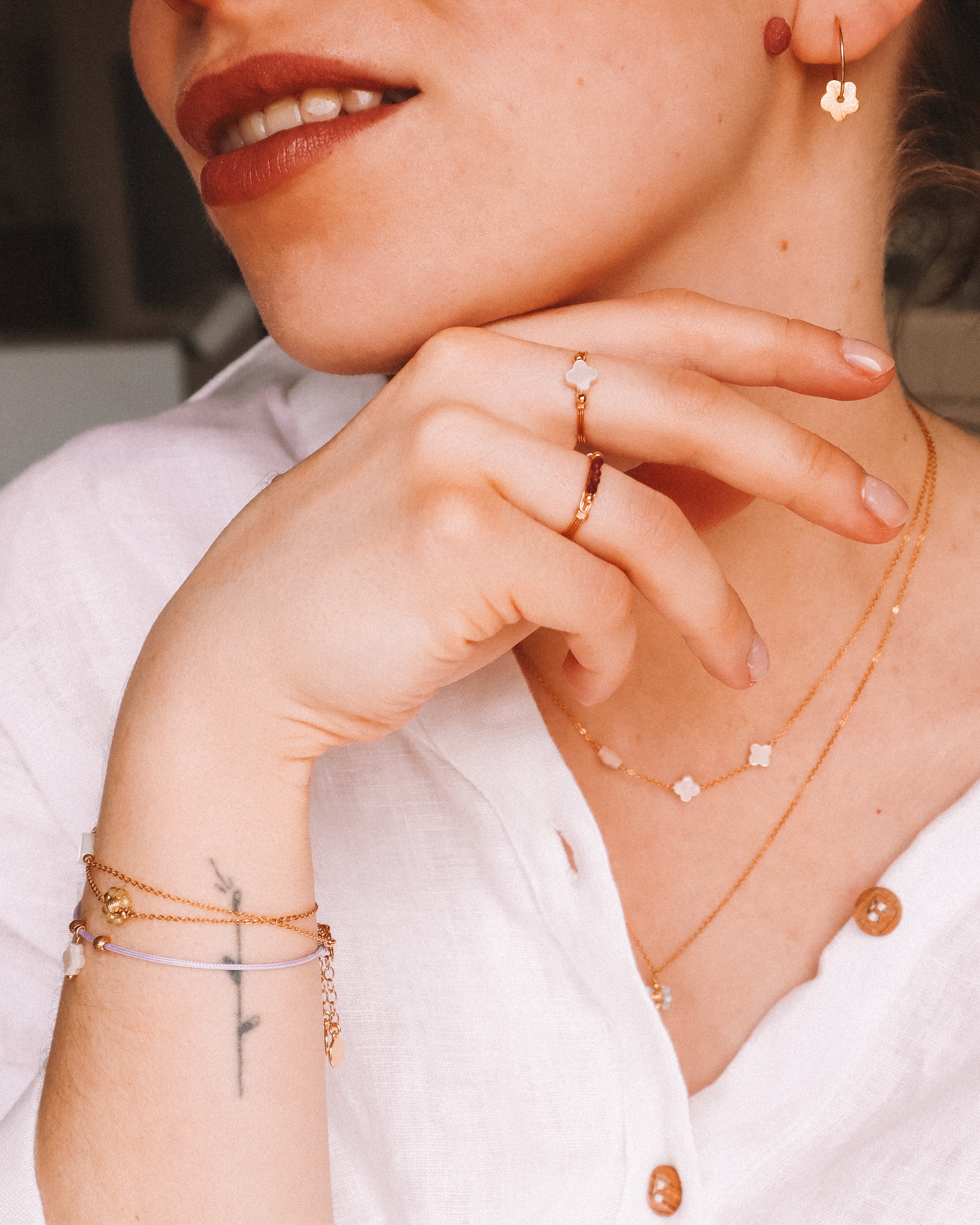 Les pierres étant naturelles et les bijoux étant fabriqués à la main, les couleurs et les formes peuvent varier légèrement par rapport à la photographie.
