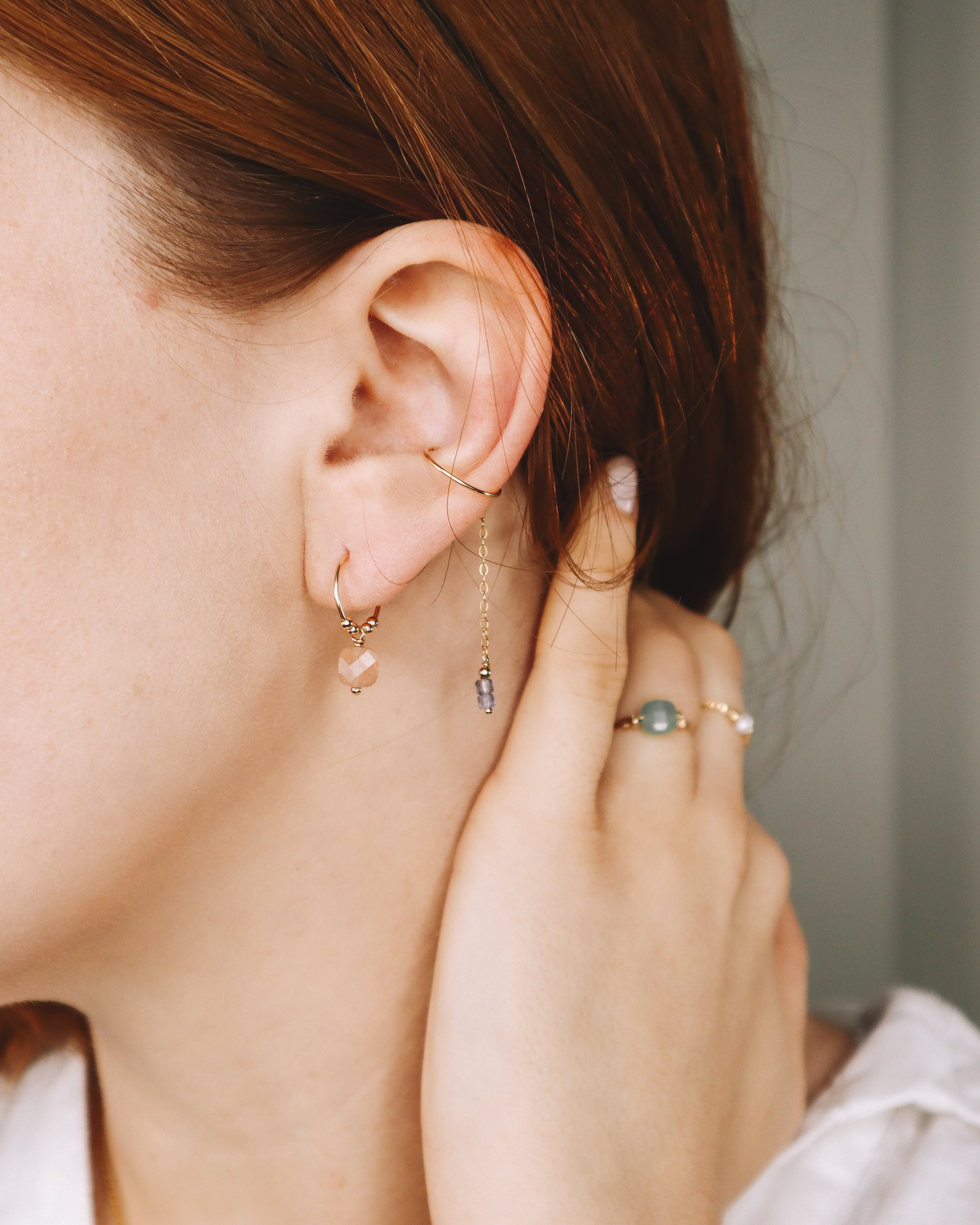 Les pierres étant naturelles et les bijoux étant fabriqués à la main, les couleurs et les formes peuvent varier légèrement par rapport à la photographie.