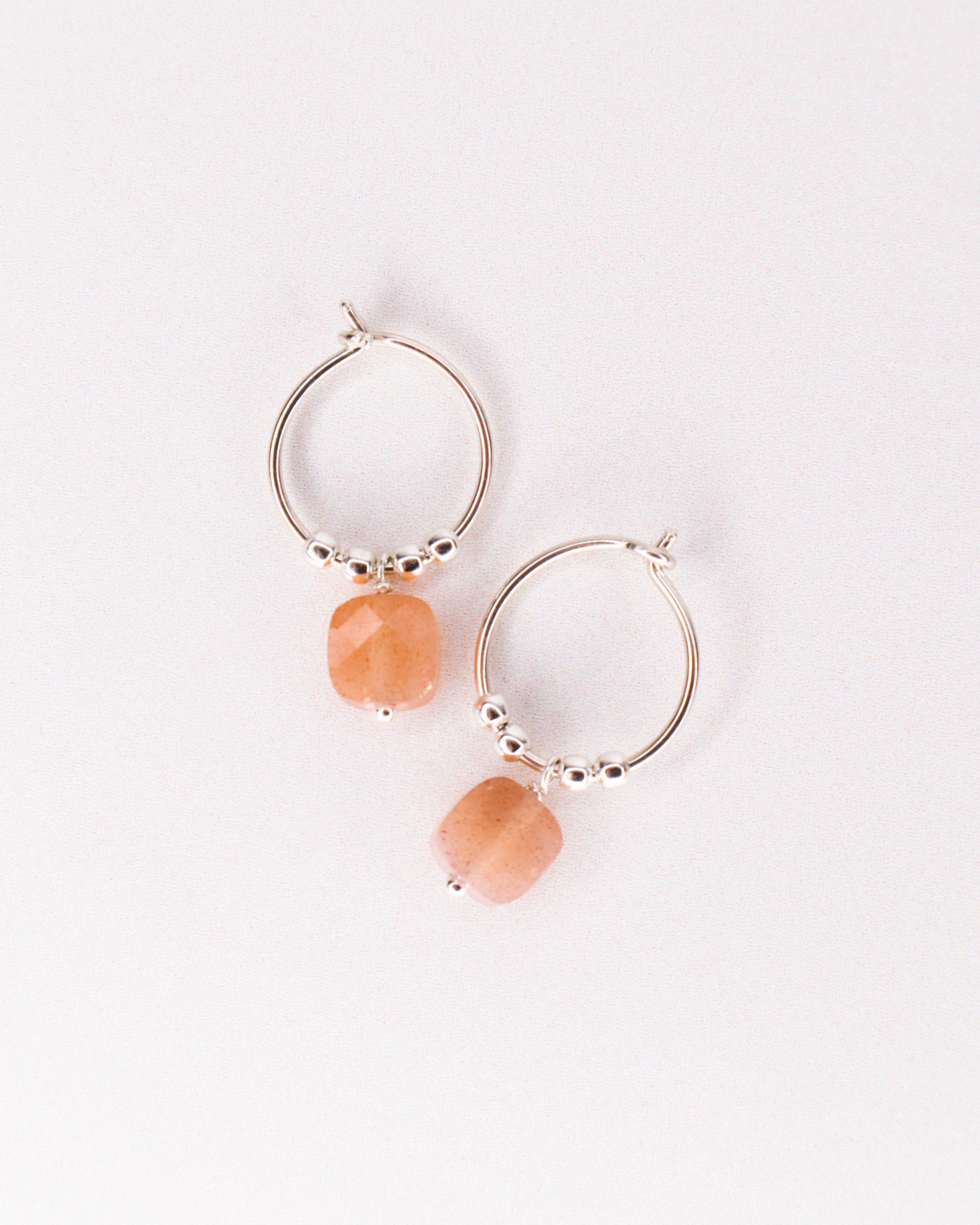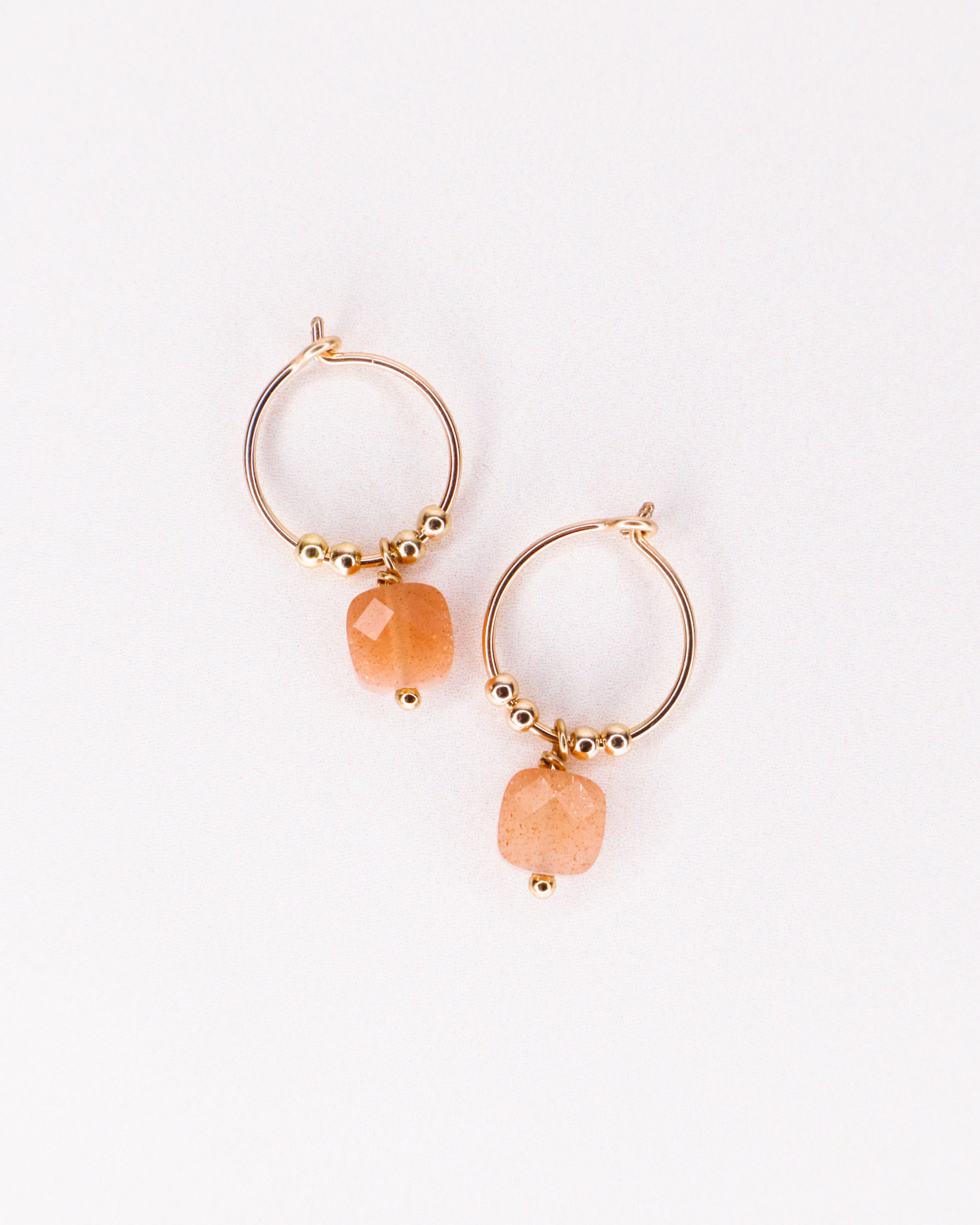 Ornées de pampilles de pierres naturelles du soleil, les créoles font 1,3cm de diamètre.