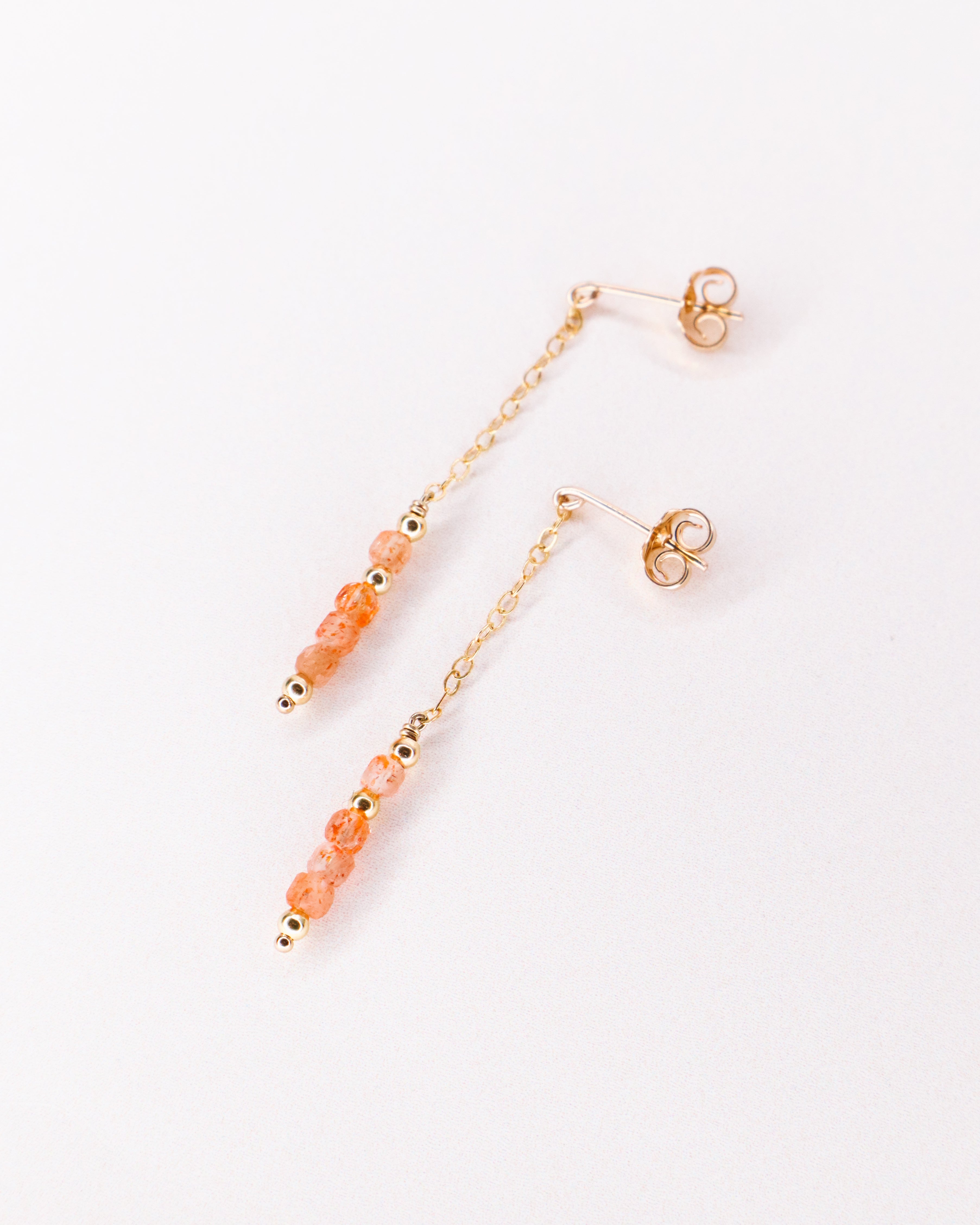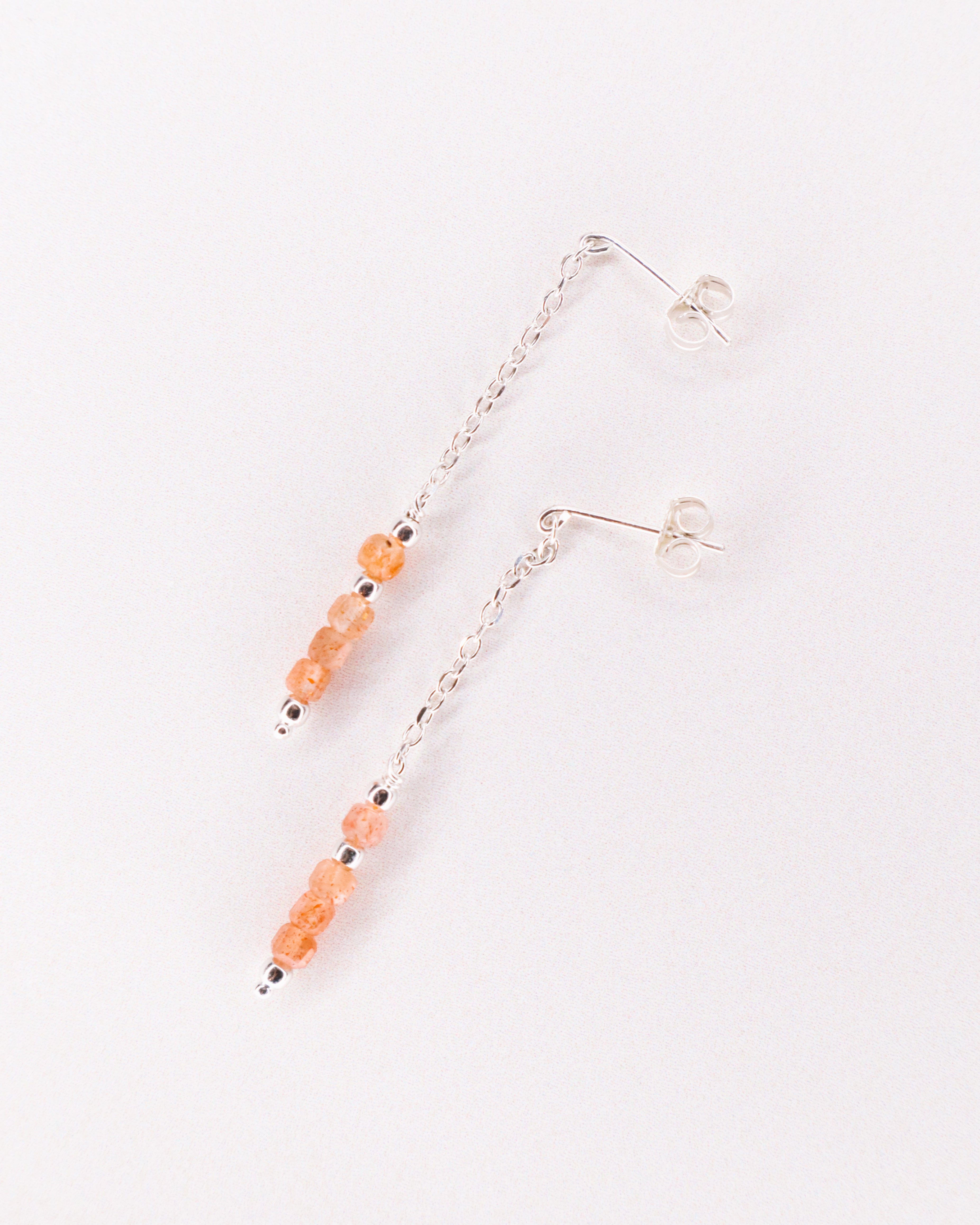 Ornées de pampilles de pierres naturelles du soleil. Les boucles font 3,5cm de longueur.