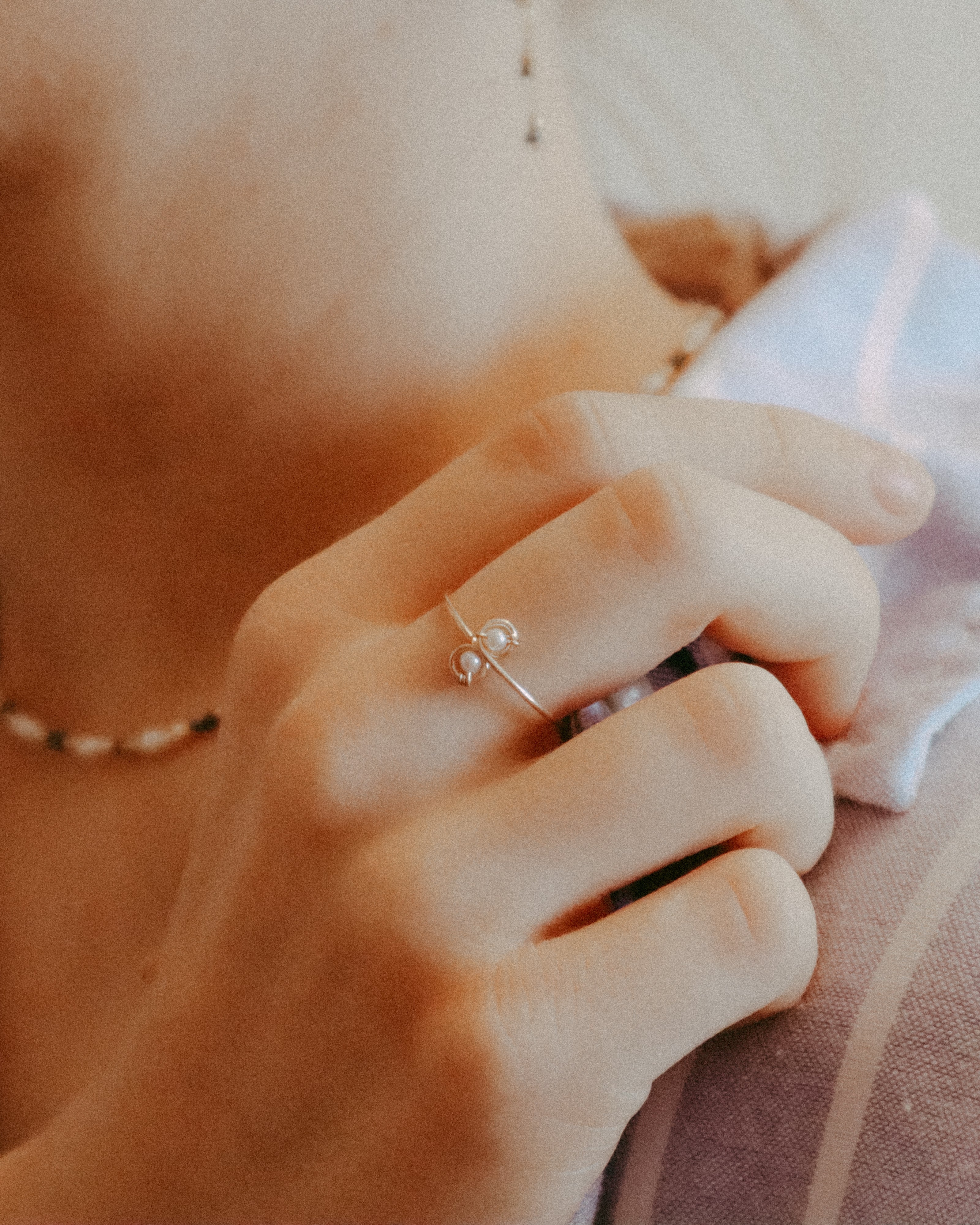 Obtenez un look élégant et artisanal avec la bague Lune - blanc.